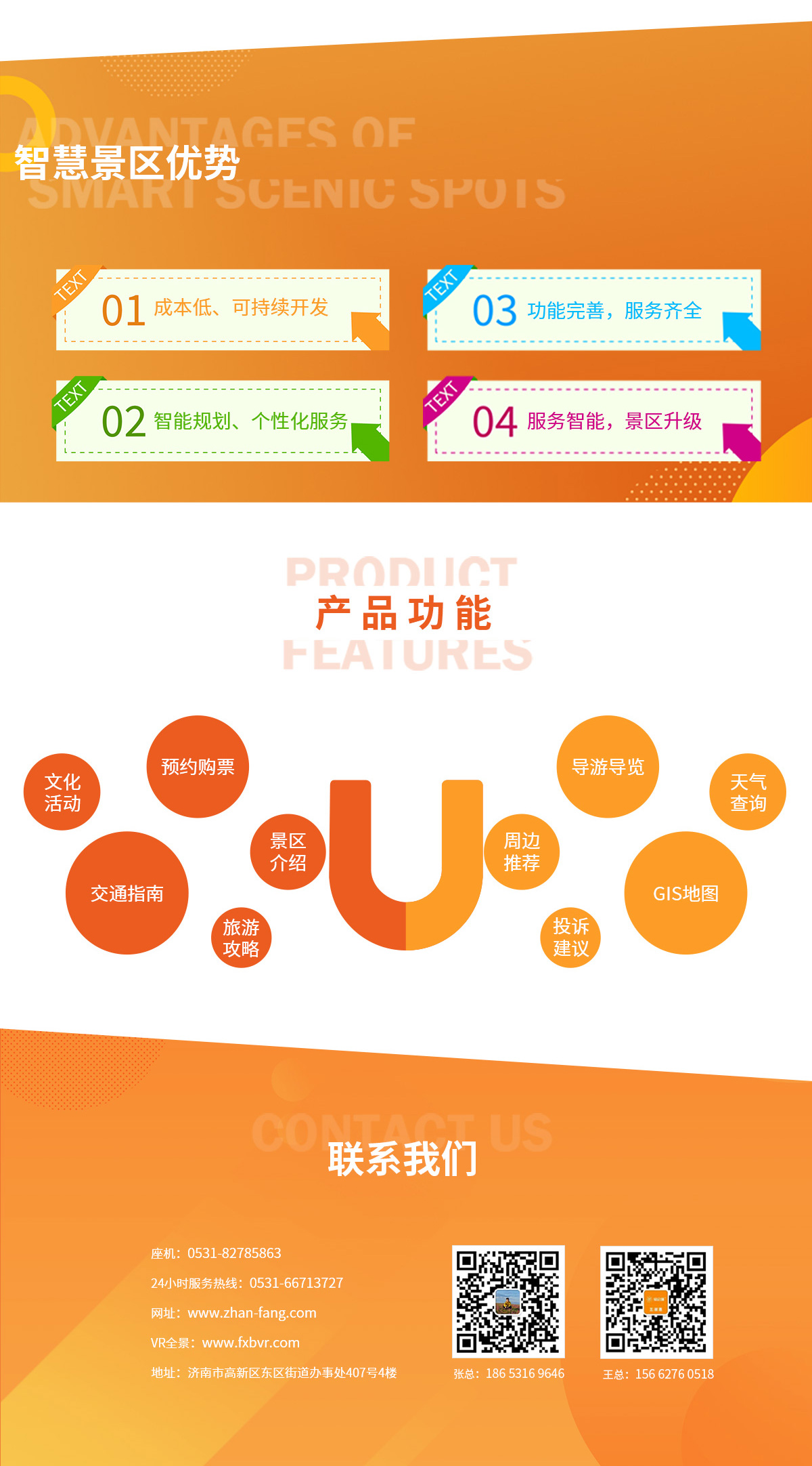 济南大明湖智慧景区系统采用微信小程序、以及后台管理系统对景区的景区介绍、预约购票、交通指南、旅游攻略、文化活动、周边推荐、停车场、找厕所、天气查询、投诉建议等数据的发布以及维护;同时,项目利用360°全景、GIS地图加强智慧景区建设。开发涉及vr全景、语音解说、景点介绍、gis地图、手绘地图等功能为一体的自助景区服务系统,利用互联网、GPS、二维码、VR等技术,方便游客多渠道获取服务信息,实现线上线下景区旅游服务有效衔接,构建以服务游客为核心的智慧旅游体系,打造智慧景区精品系统。